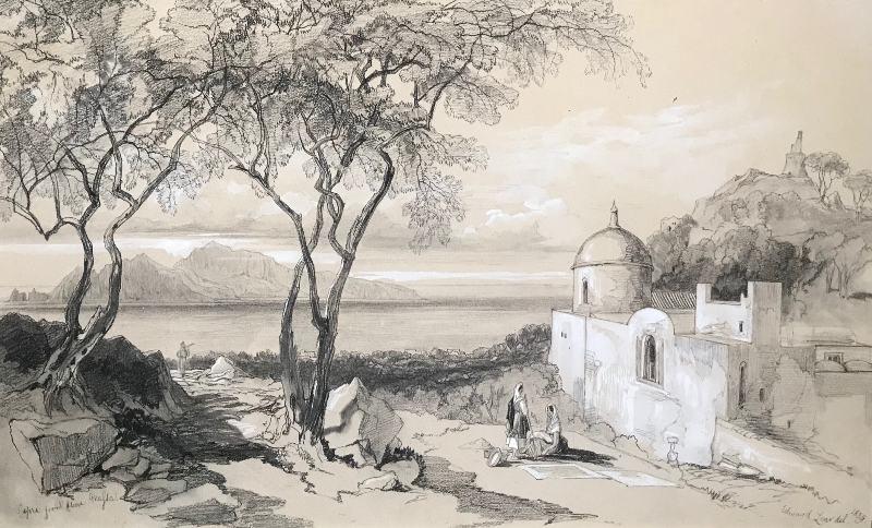 Signed and dated l.r.: Edward Lear del.1839, inscribed l.l.: Capri from above Massa., pencil heightened with white on buff paper