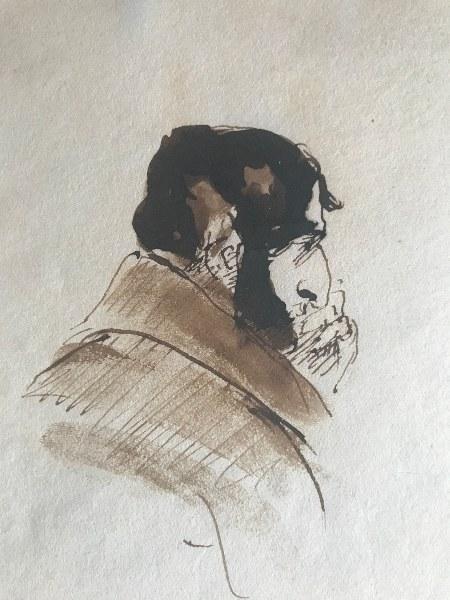 Head and shoulders, pen and brown ink and wash
