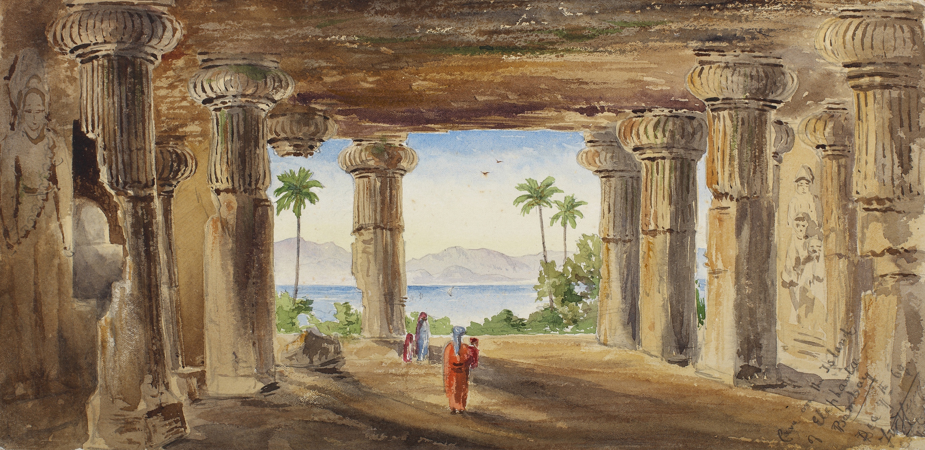 Signed, inscribed and dated l.r.: Cave on the Island/of Elephanta/Dec 9th. 69 and further signed by another, watercolour over pencil.