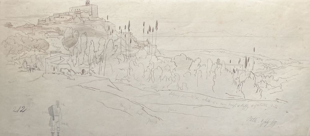 Inscribed and dated l.r.: Patti 4 July 1847, inscribed: sloping towards x which is a very deep stuffy vegetable dell and with colour notes, numbered 212, pen and brown ink with pencil