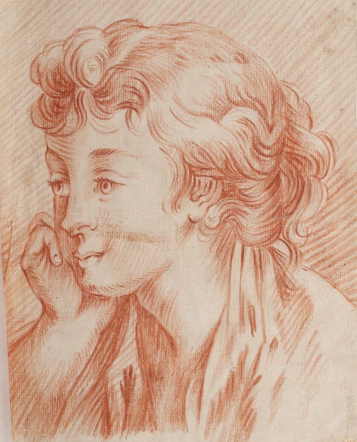 One of the drawings is inscribed ‘The New Drawing Book‘ which could be a reference to Francis Vivares, A New Drawing Book, in the Manner of Chalk fit for Youth to Draw after. 6 sepia soft ground etchings, by W. Hebert after Vanloo and Boucher, 4to. Frans. Vivares. Sept. 1759. The plates in this were in the manner of red chalk.
