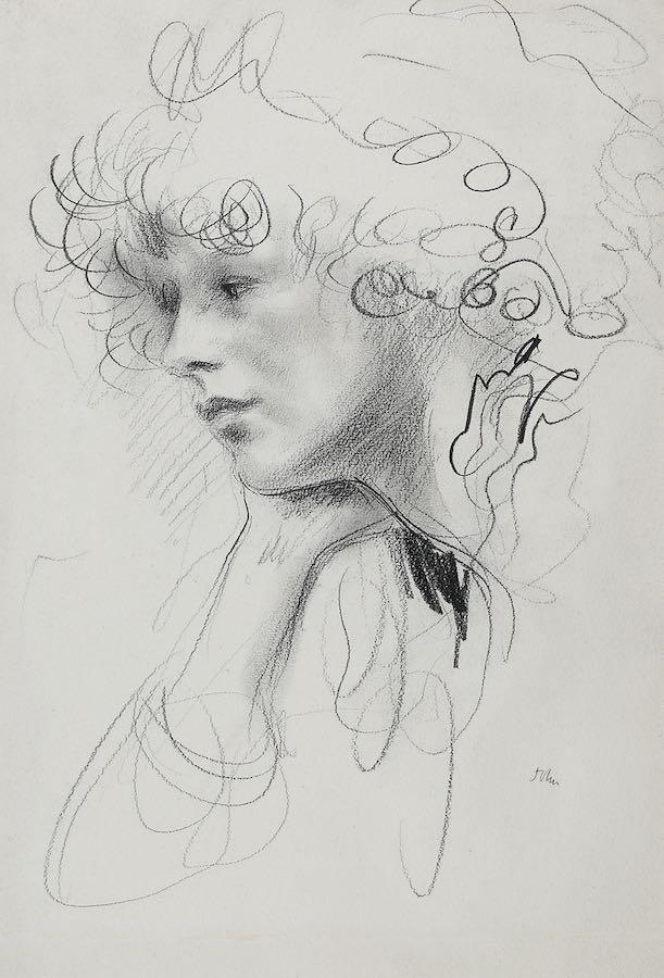 This freely drawn, captivating drawing dates from c. 1904-1906. It epitomises the qualities of John’s fluent draughtsmanship and his ability to capture the essence of a sitter with apparent ease. Its immediacy, sureness and simplicity place it amongst his finest female portraits.